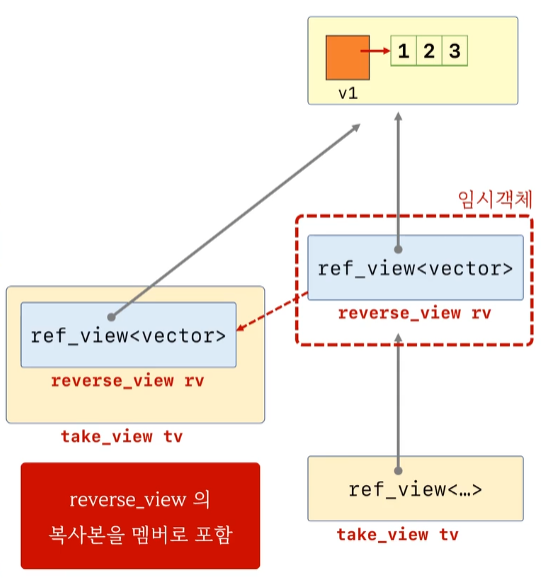 take_view tv2(rv, 2);// 멤버로 rev_view<reverse_view>가 아니라 reverse_view 복사본 포함
