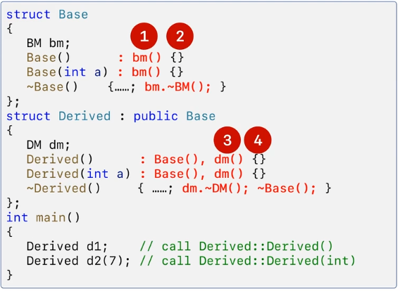 - 컴파일러가 "기반클래스" 및 "멤버데이터"의 생성자(소멸자)를 호출해주는 코드를 생성해 주는 것