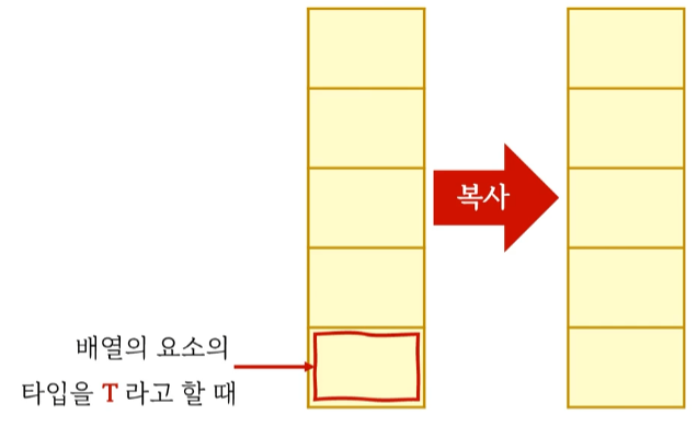 - 배열의 모든 요소에 대해 하나씩 "복사 생성자"를 호출해서 복사 해야 한다.